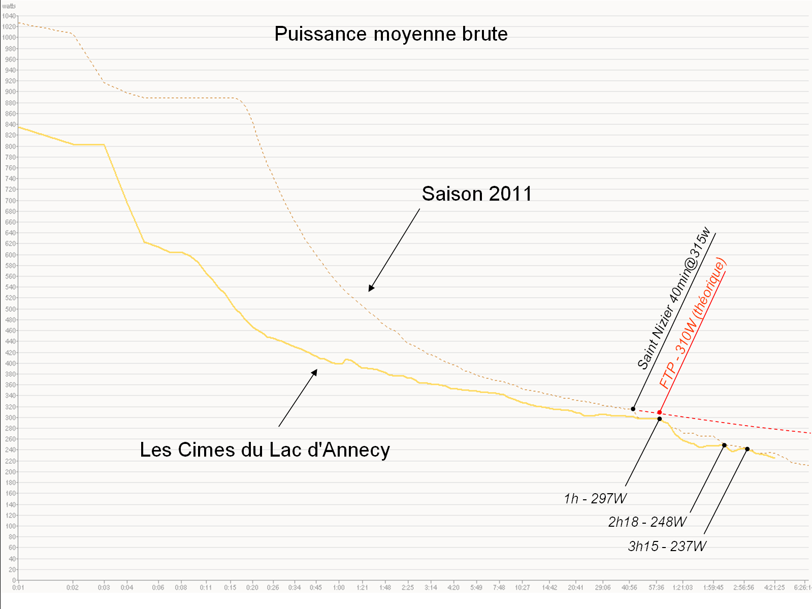 A la vue de l’asymptote sur la courbe des puissances moyennes, j’aurais dis que la FTP tend vers 310w (courbe WKO+ AP et NP).