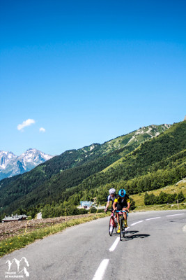 Tout le monde reste attentif, d’autant que le coureur d’Officine Mattio rate une épingle à gauche. Il a tôt fait de nous rejoindre ; de mon côté je compte les kilomètres avant le bas de la descente, peu en confiance avec un claquement avant à chaque freinage appuyé. Je ne réagis même pas lorsque Stéphane accélère de nouveau et prend un vingtaine de secondes, tandis qu’un ou deux coureurs rentrent de l’arrière. Croisement et virage à droite : c’est parti pour 14 km d’ascension vers le col de la Madeleine, où le classement va se décider… Stéphane entame l’ascension à bloc et accroit son avance à 30″ ; derrière William sonne la charge, flanqué de Jon, Tim et moi.